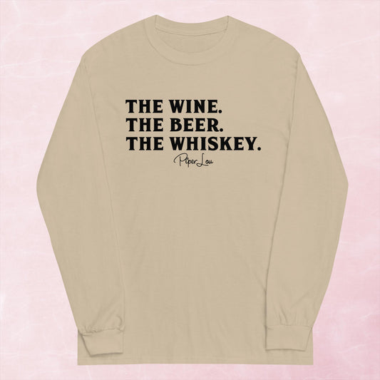 The Wine The Beer The Whiskey Graphic Long Sleeve Tee