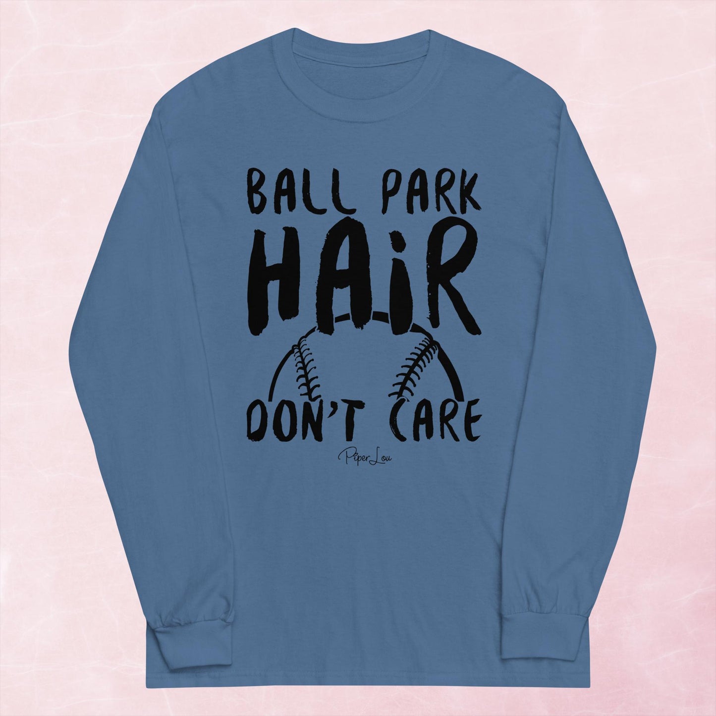 Ball Park Hair Don't Care Graphic Long Sleeve Tee